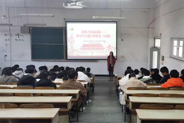 2021年11月24日中午,车辆与农业装备专业学生党支部,在求知楼A101教室召开“百年大党再出发—学习十九届六中全会《公报》”主题党课学习活动,党支部全体党员和支部所属团支部全体团员参加学习,党支部书记谭博文主讲。