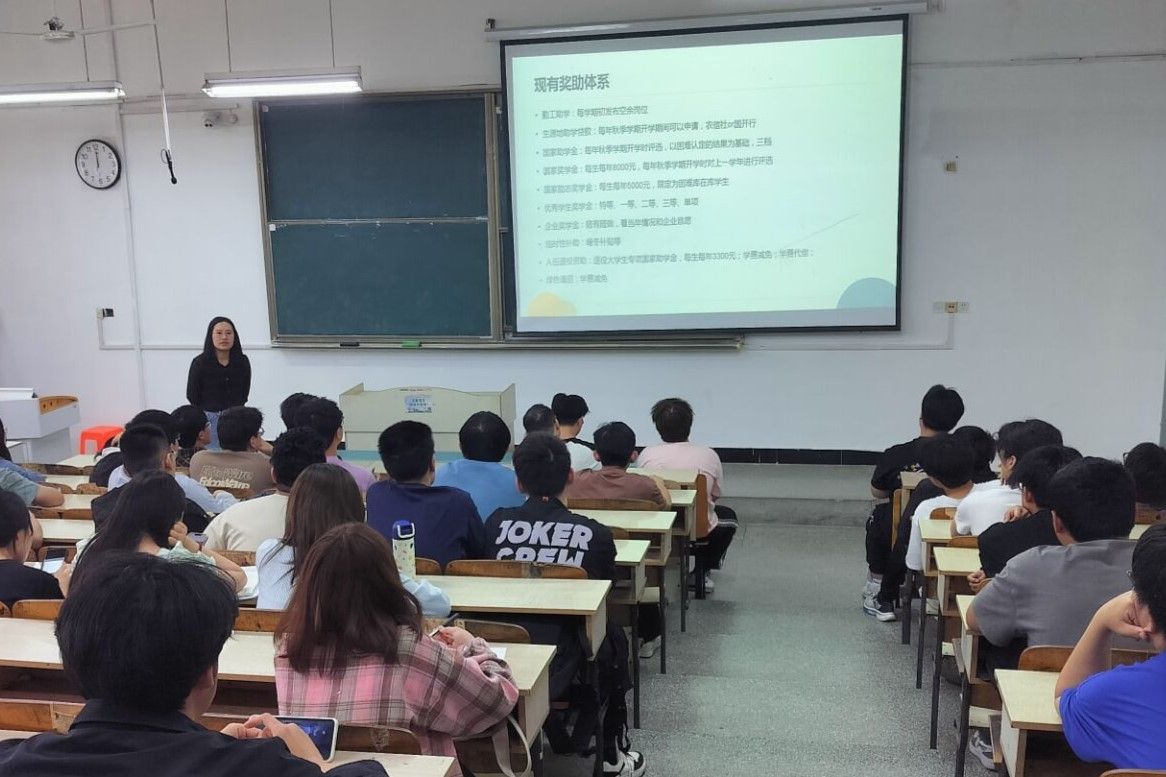5月9日中午,机械工程学院在求知楼A101教室召开资助“两节课”培训暨2024年资助诚信教育主题月工作布置会,学院学生会权益部门成员及全体班级生活(资助)委员参加会议。会议由学院学生资助联系人、专职辅导员姚迪主持。