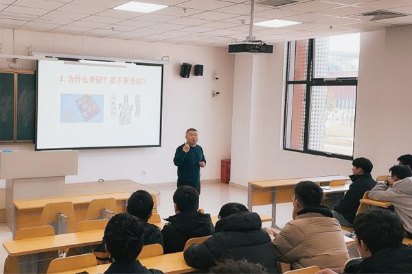 郭纯教授从“为何考研”“如何备考”两大维度展开,结合近年考研趋势与学科发展需求,强调了研究生学历在提升专业素养、拓宽职业路径、增加为国家和社会服务能力中的重要作用。他建议学生立足兴趣与能力,合理选择目标院校。“考研是一场持久战,唯有目标清晰、心态稳定、方法科学,方能行稳致远。”郭教授激励学生以“咬定青山不放松”的韧劲迎接挑战。
