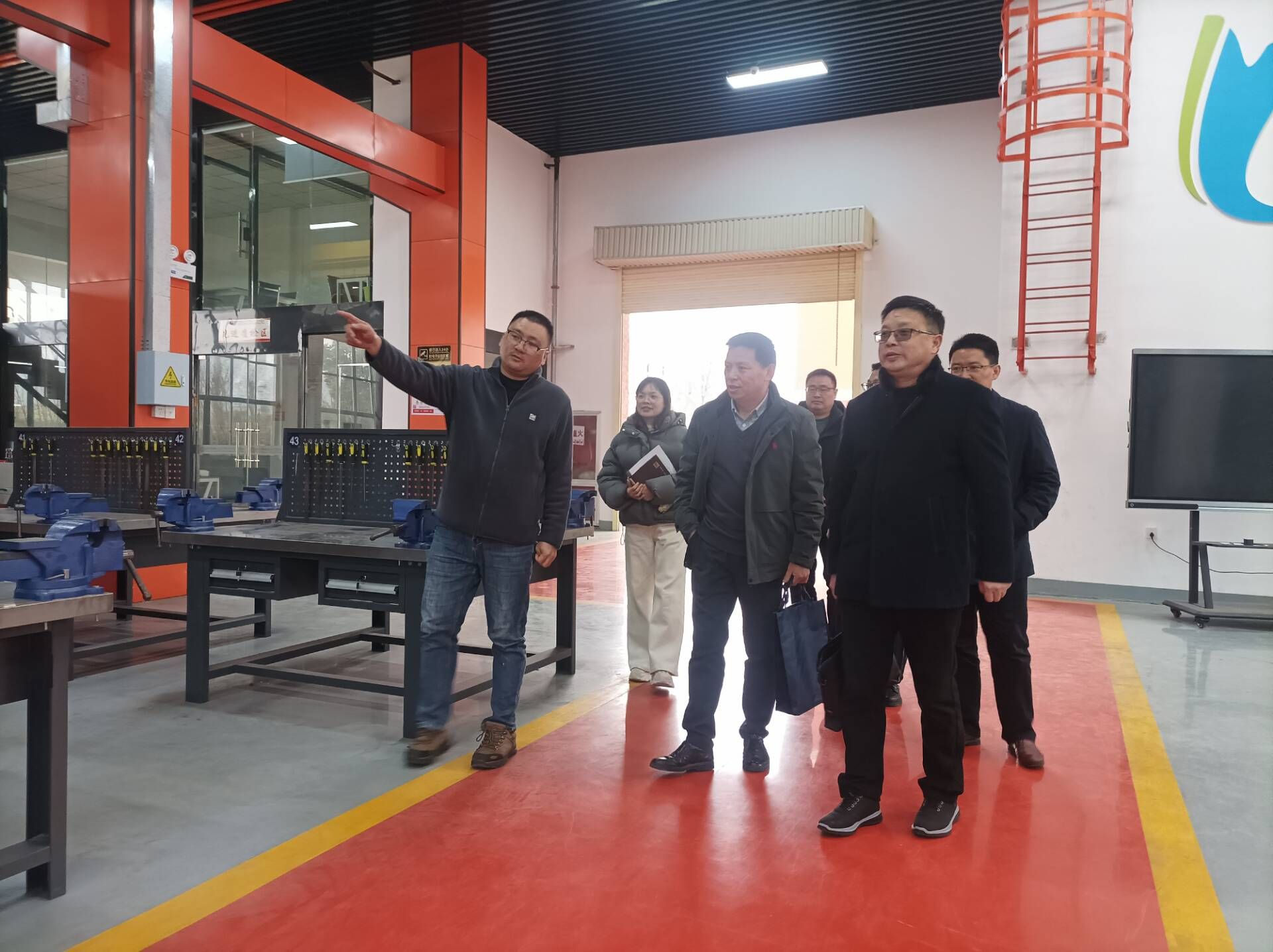 座谈会上,张信群详细介绍了该校产业学院“1451”建设模式的典型做法及取得的成效,同时也提出了在建设过程中遇到的问题,并表达了进一步加强两校之间交流合作的意愿。殷德莉介绍了实验实训中心的机构设置以及三级管理模式,并且带领调研团参观了电气工程实训中心和食品与环境工程实训中心。