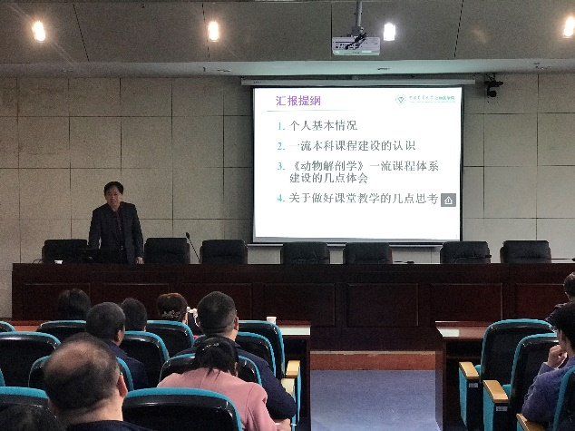 两位老师分别从政策解读和课程申报内容方面与大家分享了成功经验,特别是以获批的国家一流本科课程《动物解剖学》和《动物组织学与胚胎学》两门课程重点讲解了说课视频的制作、教案的设计以及特色和亮点的展示,并鼓励课程教师以国家一流课程申报为契机,持之以恒地把精力投入到课程建设中去,不断提高课程建设水平。(特约通讯员:黄丹丹 审核:俞浩)
