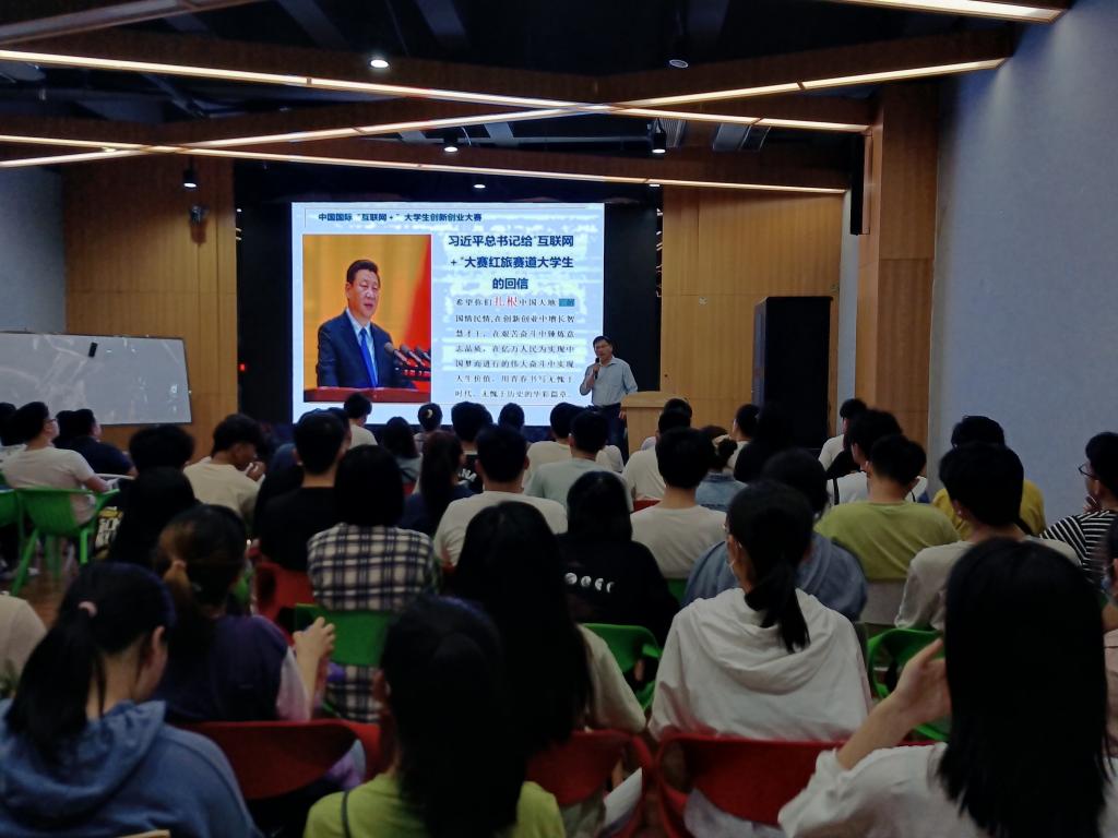 5月9日下午,在龙湖校区众创空间路演厅,教务处副处长 创新创业学院副院长高青海教授为师生作《第七届“互联网+”大学生创新创业大赛文件解读及申报要点》专题辅导报告。龙湖校区学生代表、指导老师代表共计100多人聆听了报告。