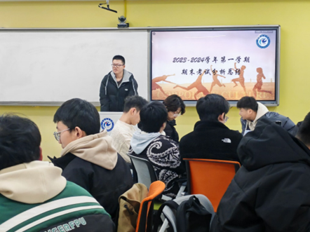 学委赵潜带领同学们分析了上学期班级成绩情况和目前班级在学习方面的不足之处及未来努力方向,并重点对单科成绩优异的同学进行了表扬。