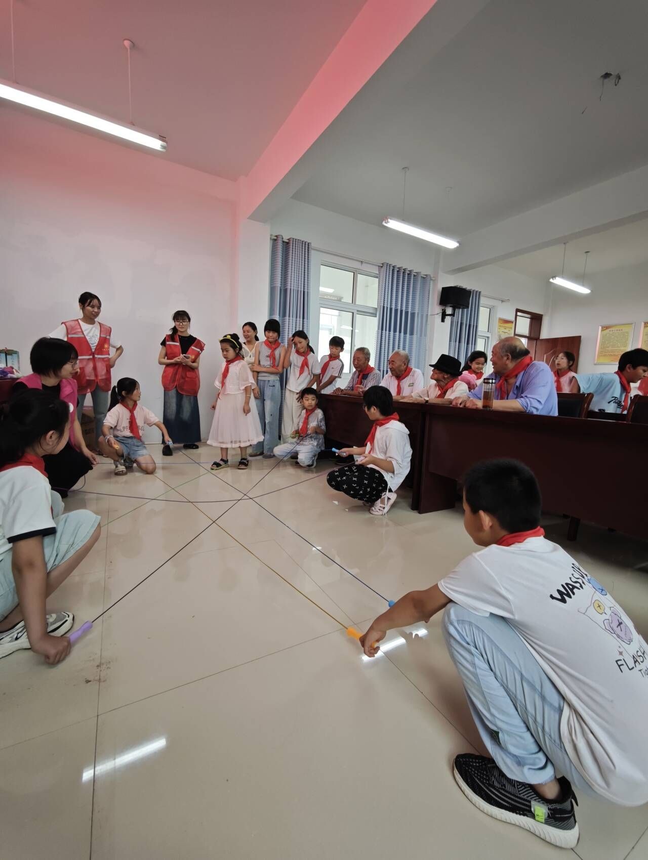 7月31日下午,实践团队与朱顶镇团委联合在刘台村举办“致敬老兵·童心向党”主题活动,实践团队为青少年儿童精心设计了一场“重走长征路”障碍赛,让青少年们体验长征的艰辛与伟大,也让青少年们深刻认识到今天的幸福生活来之不易,勉励他们把长征精神带进学习和生活。