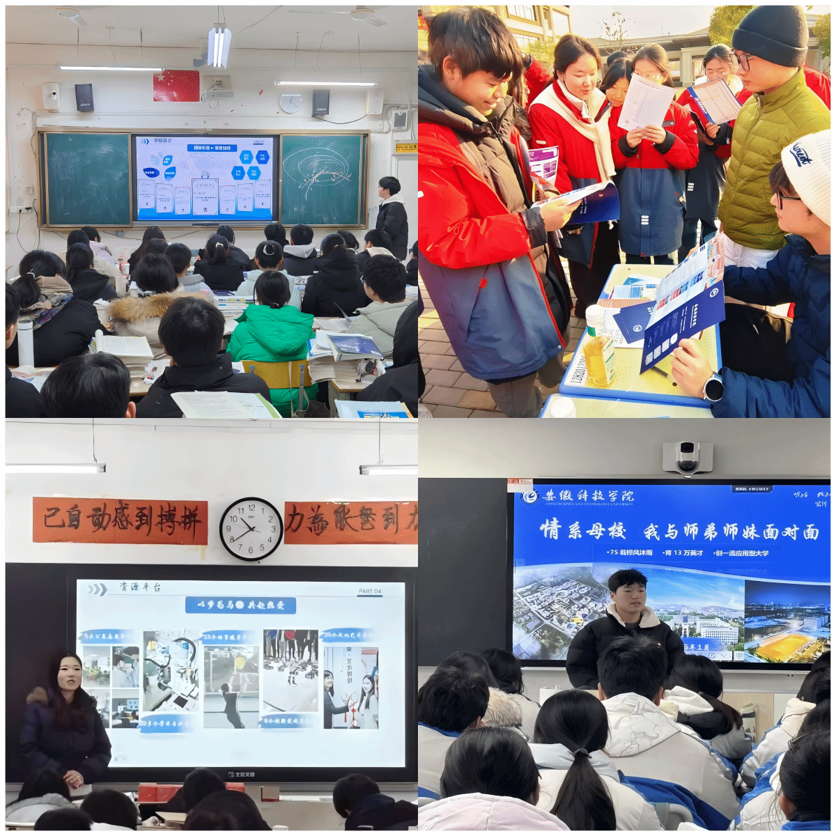 寒假期间,农学院学子积极响应学校号召,踊跃参与“情系母校 我与师弟师妹面对面”社会实践活动,40多名同学赴淮南一中、凤阳中学等19所中学开展宣讲交流,以青春之力回报母校培育,传递新时代大学生的榜样力量。