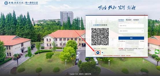 3、企业微信扫码登录。选中“企业微信”图标,使用企业微信APP扫一扫功能,扫描二维码登录。