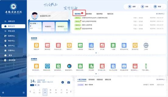 2.待办中心。PC端和企业微信移动微门户展示并快速办理各个业务系统、各应用服务需要审批或办理的事项、待阅的消息、查询个人申请事项的办理进度等。点击待办事项可直达审批或办理流程,减少系统登录等操作步骤。