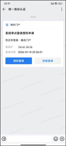 4、推送登录。输入学号或工号,点击“推送授权登录消息”,在企业微信APP授权登录即可。