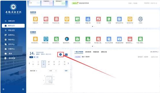 4.日程中心。PC端和企业微信移动微门户自动集成师生个人的课表、考试、监考等日程,领导会议等日程,并提前在PC端和企业微信推送提醒,师生可通过PC端日程中心右上角“待安排”、个人主页日程模块、企业微信端日程中心“添加日程”自定义添加个人日程。