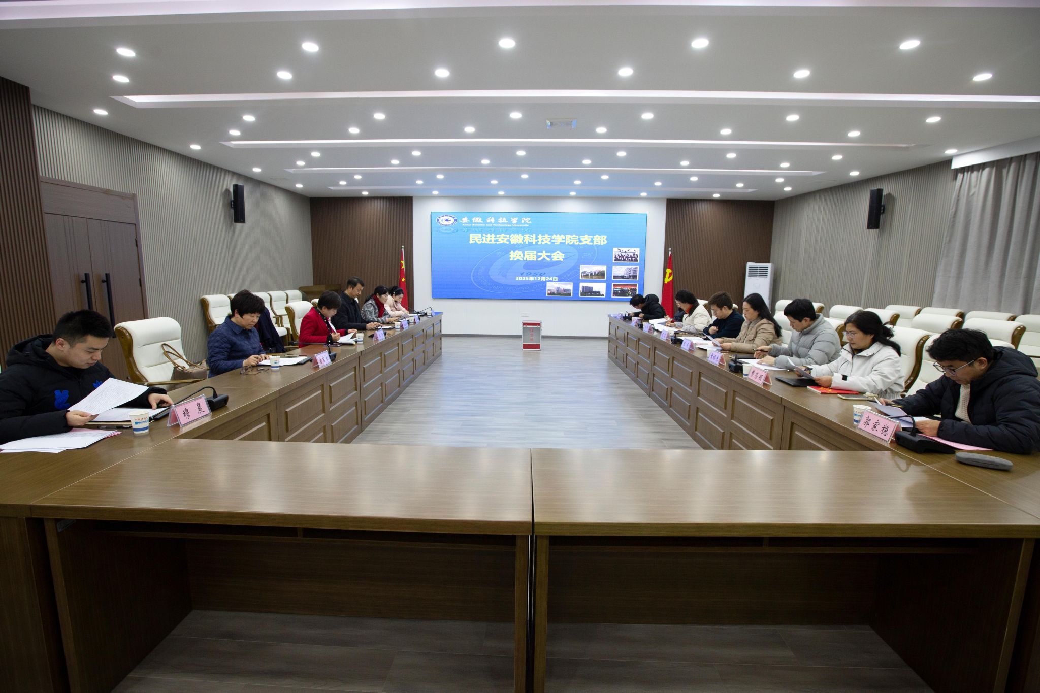 12月24日下午,民进支部换届大会在凤阳校区图书馆B多功能厅召开。蚌埠市政协副主席、民进蚌埠市委会主委宋静,党委宣传部、党委统战部常务副部长,党委学工部、学生处处长黄立义,民进蚌埠市委会专职副主委潘吉红等参加会议。会议由民进支部主委张菊主持。